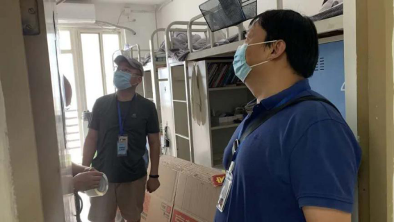 在老师们打包工作完成后,辅导员们最后进行了宿舍核查,动力学院本次74名同学的行李打包工作圆满完成。