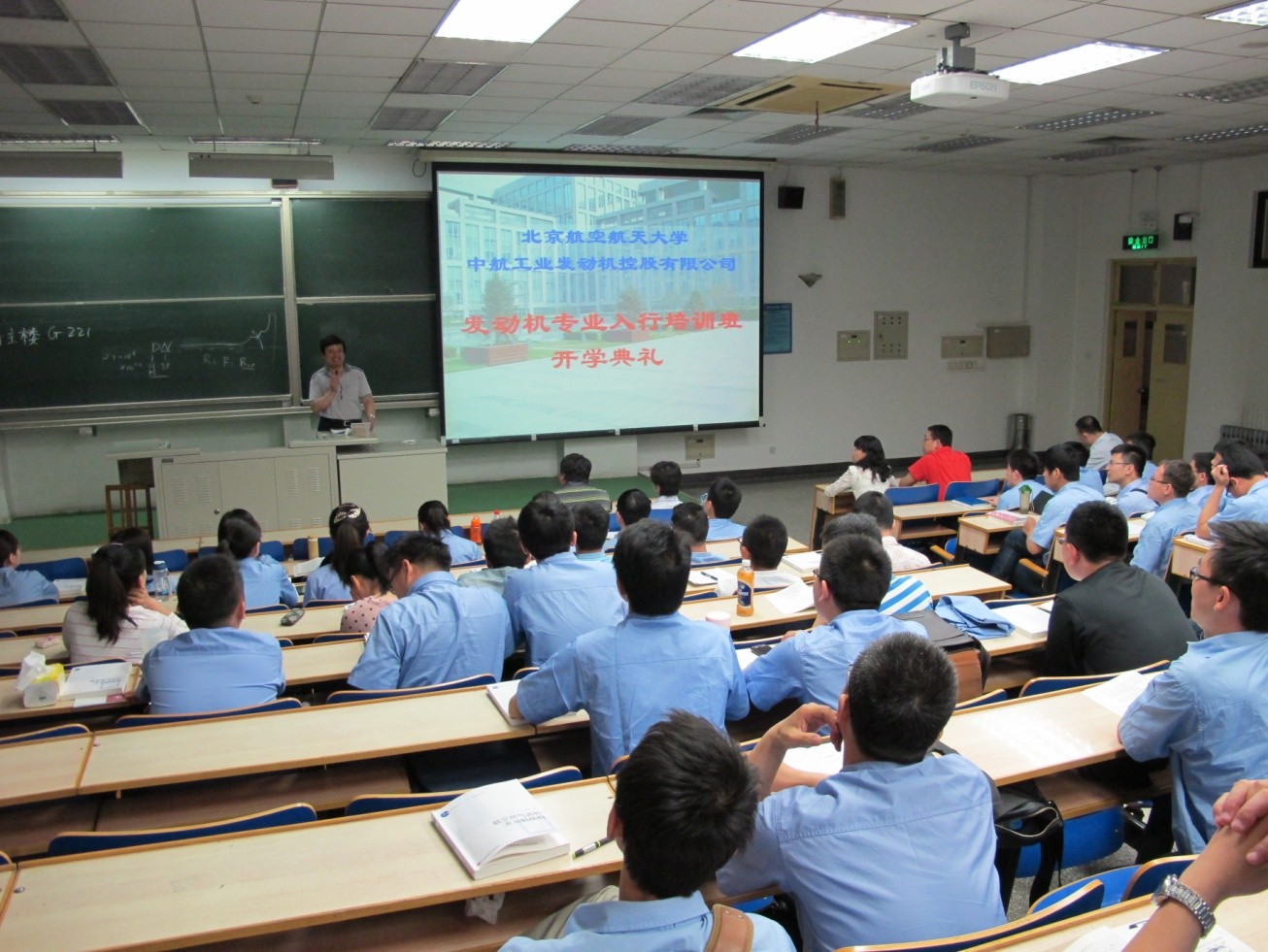 2013年5月13日上午,由北京航空航天大学与中航工业集团发动机控股有限公司联合主办、先进航空发动机协同创新中心承办的“发动机专业入行培训班”开学典礼在北京航空航天大学主M102教室隆重举行。