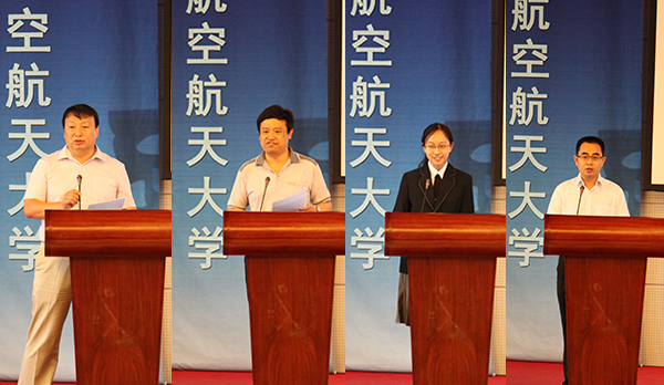 北航必发bf88官网院长丁水汀、党委书记王强、学生代表马融、优秀青年校友朱靖发言