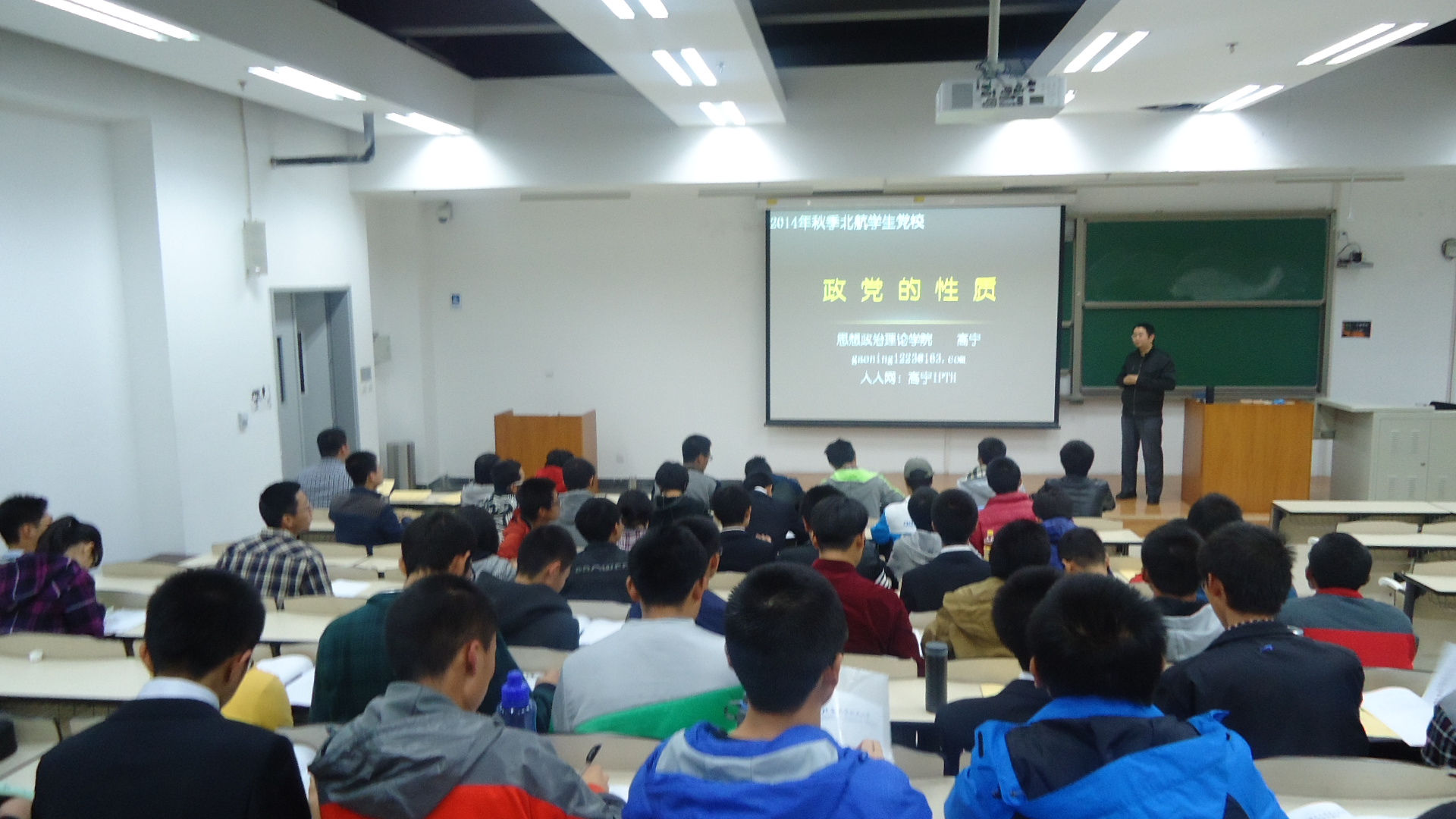 2014年11月5日晚18:30,必发bf88官网与新媒体艺术与设计学院第五期共建学生党校第一次党课在沙河校区教3-410教室顺利举行。本次党课邀请到了思想政治理论学院的高宁老师,高宁老师为我们讲授了题为《政党的性质》的精彩党课。