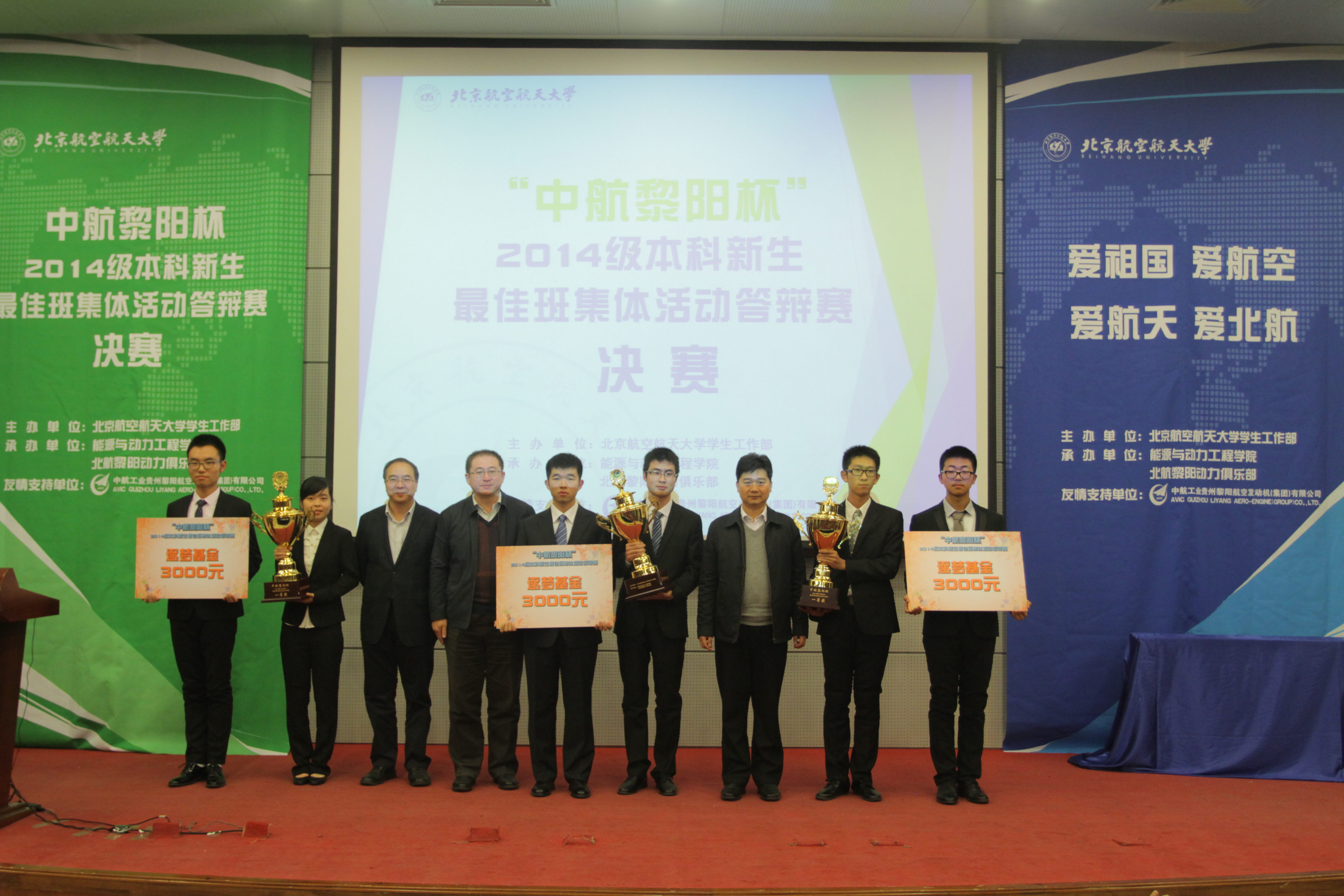 11月26日晚,由北京航空航天大学学生工作部主办,必发bf88官网、北航黎阳动力俱乐部共同承办的“中航黎阳杯”北京航空航天大学2014级本科新生最佳班集体活动答辩赛决赛在沙河校区实验四号楼205报告厅顺利举行。