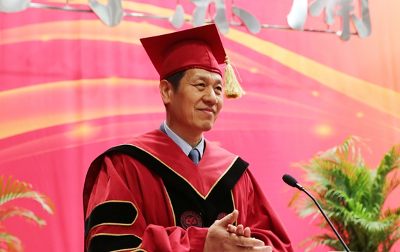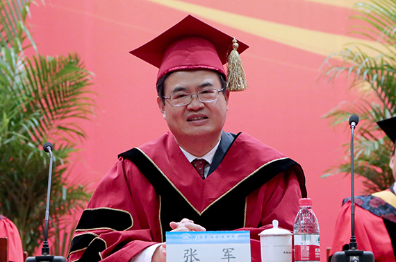校长徐惠彬院士发表了热情洋溢的讲话。他首先代表张军书记及全体师生员工向全体毕业生表示热烈的祝贺,他在讲话中回顾了近年来学校在各项事业中取得的显著成绩,赞扬了毕业生们追求卓越的精神和取得的骄人成就,感谢毕业生们对学校事务的热情参与和执着促进。徐校长在讲话中将三点临行嘱托赠与全体毕业生,一是理想高远、胸怀天下,二是方圆有度、行者无疆,三是坚守初心、砥砺前行。他引用《孟子》名言“大人者,不失其赤子之心者也”,寄语毕业生们要永葆北航人“空天报国、敢为人先”的精神本色。徐惠彬校长最后鼓励全体毕业生响应习近平总书记的期望,把个人的理想追求融入国家和民族的事业中,勇做走在时代前列的奋进者、开拓者,为国家富强、民族振兴、人民幸福多作贡献。