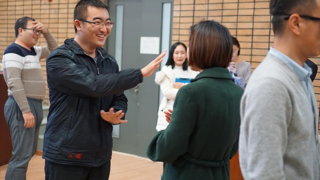 交流会开始,工作人员首先播放了北航北外的宣传片,介绍了两校成立至今的校园文化。接着,北航学生代表周锐同学和北外学生代表朱丹同学结合专业背景分别向同学们分享了自己对校园文化的感悟。随后,两校同学在室内进行了知识抢答。在知识抢答环节,主持人成波同学提出了3个关于北航校园文化的问题,由北外同学抢答,主持人赵悦同学提出了3个关于北外校园文化的问题,由北航同学回答,同学们都抢答正确,并获得精美小礼品。