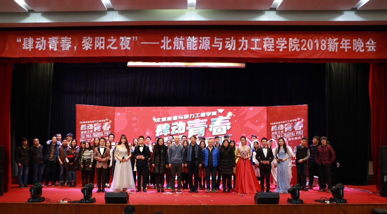 1月7日晚18:30,由必发bf88官网主办,学院研究生会、学生会联合承办的“肆动青春,黎阳之夜”学院2018新年晚会暨师生表彰会在学术交流厅成功举行,表彰了标兵党支部书记和优秀党支部书记、沈元奖章提名奖和五四奖章获得者、四维动力奖学金获得者。北京全四维动力科技有限公司总工程师徐克鹏,北航必发bf88官网院长丁水汀、行政副院长许全宏、分党委副书记方志、航空推进系党支部书记马艳红、仿真中心党支部书记金东海等出席,学院近500名同学现场观看了此次新年晚会。