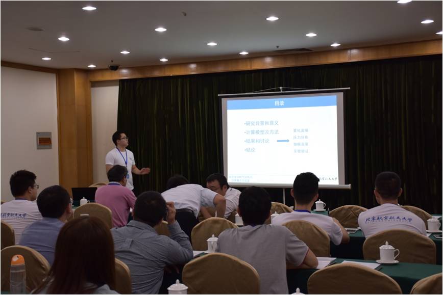 会议开幕式由中国航空学会动力分会燃烧与传热传质专业委员会副主任徐国强教授主持,委员会主任范玮教授致欢迎辞,北京航空航天大学副校长陶智教授及北京航空航天大学必发bf88官网副院长陈龙飞副教授代表承办单位对于会议的召开表示热烈的祝贺。陶智教授、何立明教授、徐华胜研究员分别为大会作了精彩的特邀学术报告。报告期间气氛热烈活跃,与会者提问踊跃,大家充分深入地进行了沟通交流。