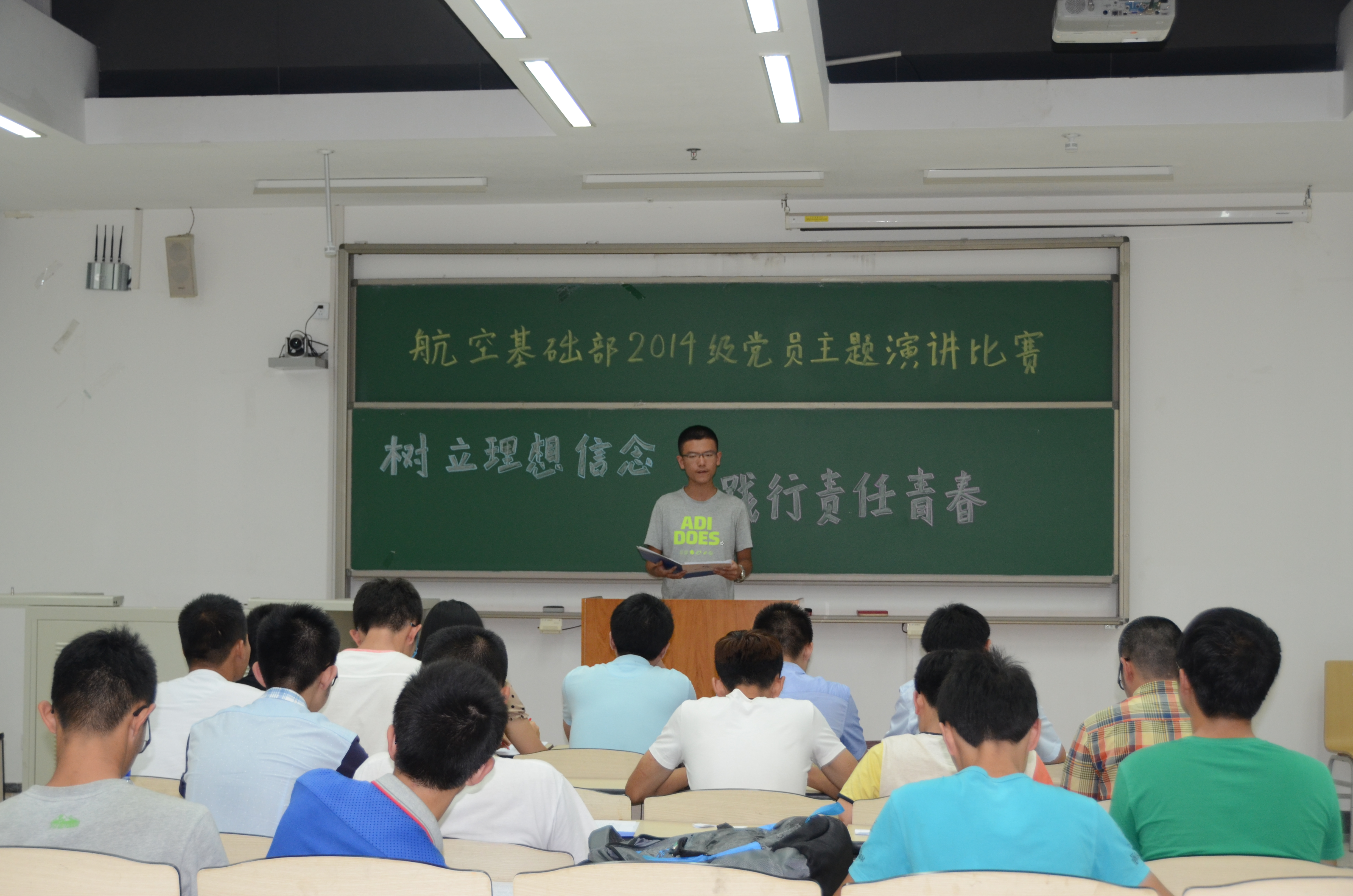 2014年8月29日晚,北京航空航天大学航空基础部于沙河校区组织进行了新生党员主题演讲比赛,此次演讲比赛主题为“树立理想信念,践行责任青春”。