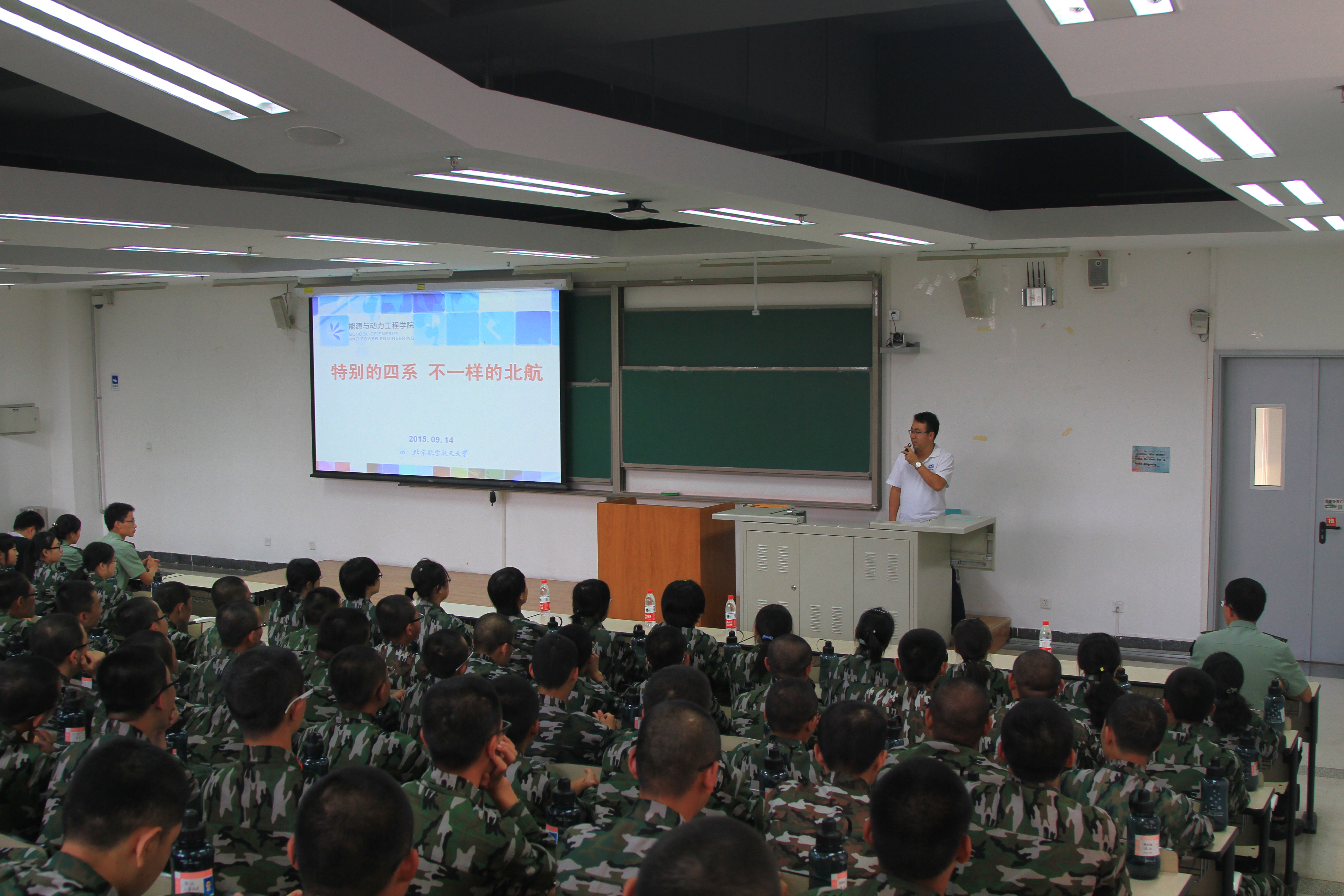 9月14日下午,北京航空航天大学必发bf88官网2015级军训中期慰问会在沙河校区J3-201顺利举行。必发bf88官网党委书记王强教授,党委副书记李建伟老师,分团委书记方志老师出席了本次慰问会,为正在参加军训的新生们给予了深切的关怀和问候,同时也为刚入学的新生上了一堂别开生面的“大学第一课”。