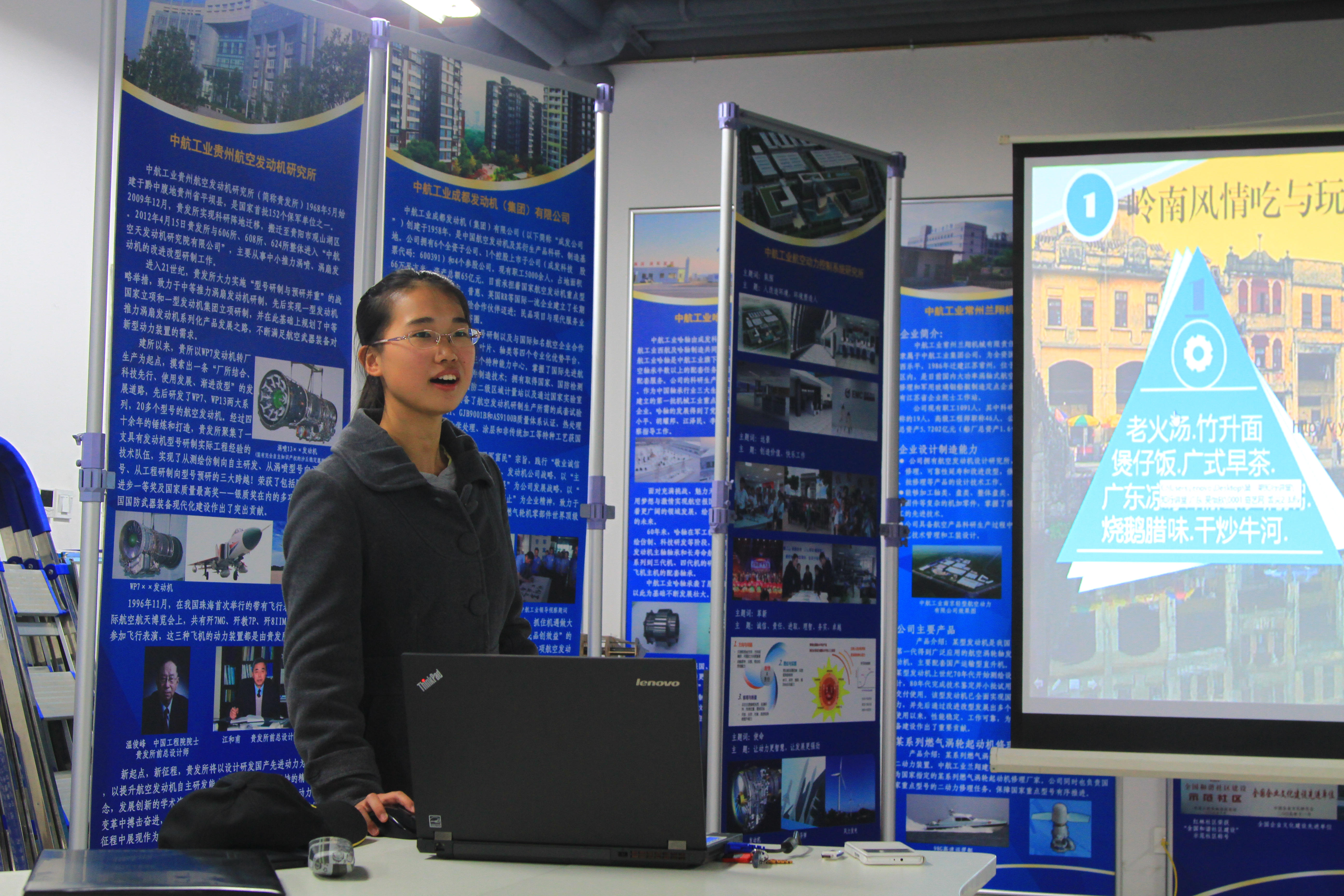 吴怡欣同学的展示将整场知行讲堂活动的气氛推向了一个新的高潮。来自广东的她,通过“回味岭南”、“世纪掠影”、“南粤风情”、“未来思索”四个不同角度,全方位地带大家了解了南岭之南这片沃土上的历史变迁、经济发展、人民生活,有广度,亦有深度。值得一提的是,在展示岭南美食时,她引入了大量视频材料,生动地展示了广东菜品的色、香、味,令全场为之振奋,给大家带来了实实在在的惊喜。