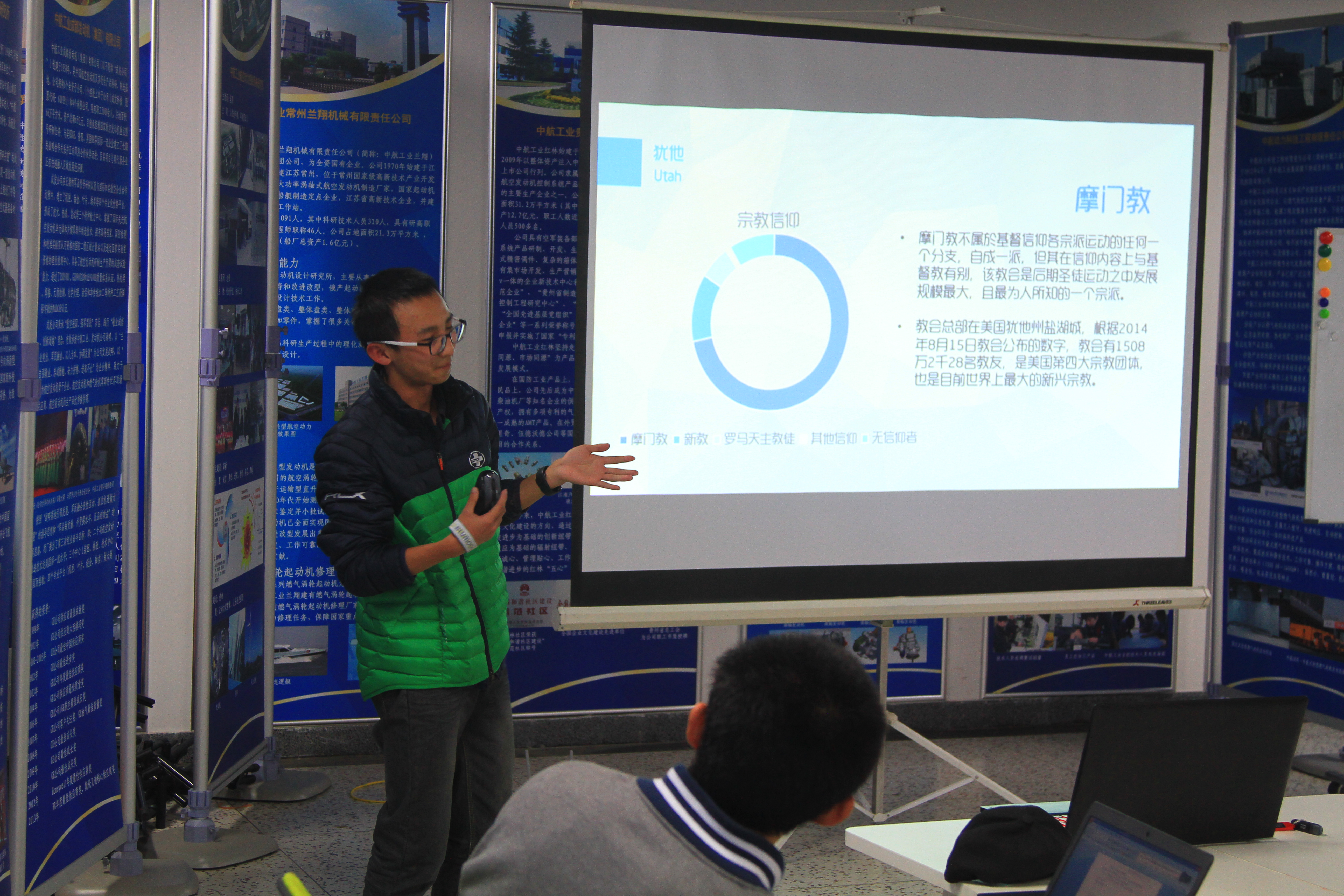 接下来的两位同学带领大家走出中国,“飞”到西方世界,去了解了欧美社会的风情文化。李卓城同学用课件和演讲的形式带大家了解了法国巴黎的一些基本情况,丰富了大家对巴黎这个国际浪漫之都与文化名城的了解,拓宽了大家的视野;黄子健同学和大家分享了他在美国犹他州游学时的一些所见、所闻、所感。在带领大家了解犹他州的风土人情的同时,还和大家分享了一些对当地人民所信仰的宗教——摩门教教义和“一夫多妻制”问题的一些深入思考。他精心准备的课件和他有思想、有见地的演说,引发了同学们的深入思考,获得了同学们的好评。
