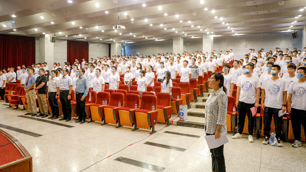 2022级新生王冠洋发表感言。作为今年北航第一位收到高考录取通知书的学生,他感慨,佩戴上学院的院徽,是一份荣誉,更是沉甸甸的责任。为此,他代表全体新生郑重承诺,立志为祖国航空发动机事业做出贡献,自觉传承“自强中国心”精神,坚守初心使命,矢志空天报国。