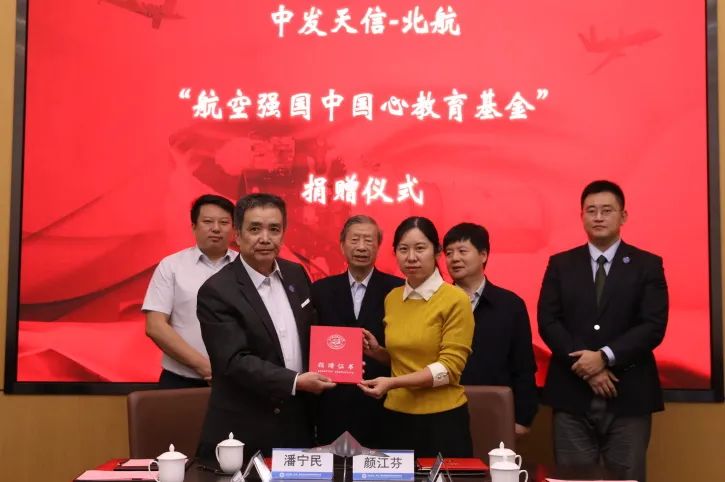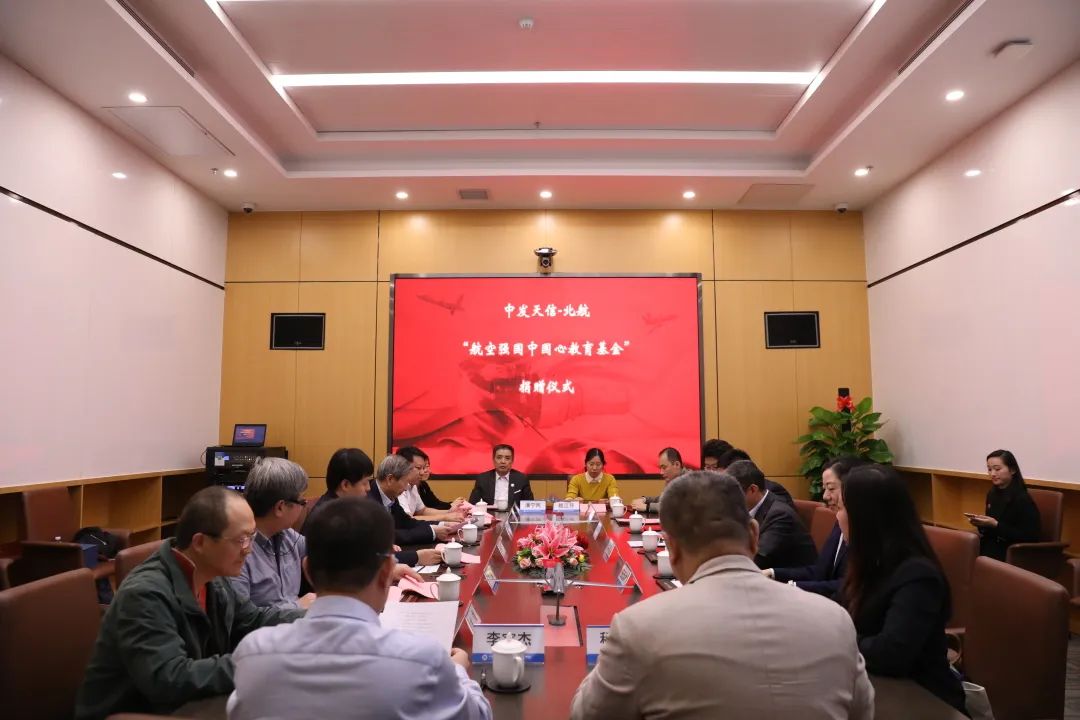 10月14日下午16时,中发天信-北航“航空强国中国心”教育基金捐赠仪式在中关村四季科创产业园A座一层06会议室举行。参会的北航领导老师有:中国心基金发起人刘大响院士,校团委书记庄岩,校教育基金会秘书长颜江芬、项目主管俞文君,中国心基金管委会办公室主任、动力学院院长闫晓军,学院党委副书记方志,仿真中心主任金捷、党支部书记金东海、教授方韧,学院专职辅导员程乾等;中发天信集团董事长刘臣,副总经理潘宁民、傅田、胡军生,政府事务部部长田远村;中国信息协会通用航空分会副会长程泊霖。仪式由中发天信集团副总经理李宇杰主持。