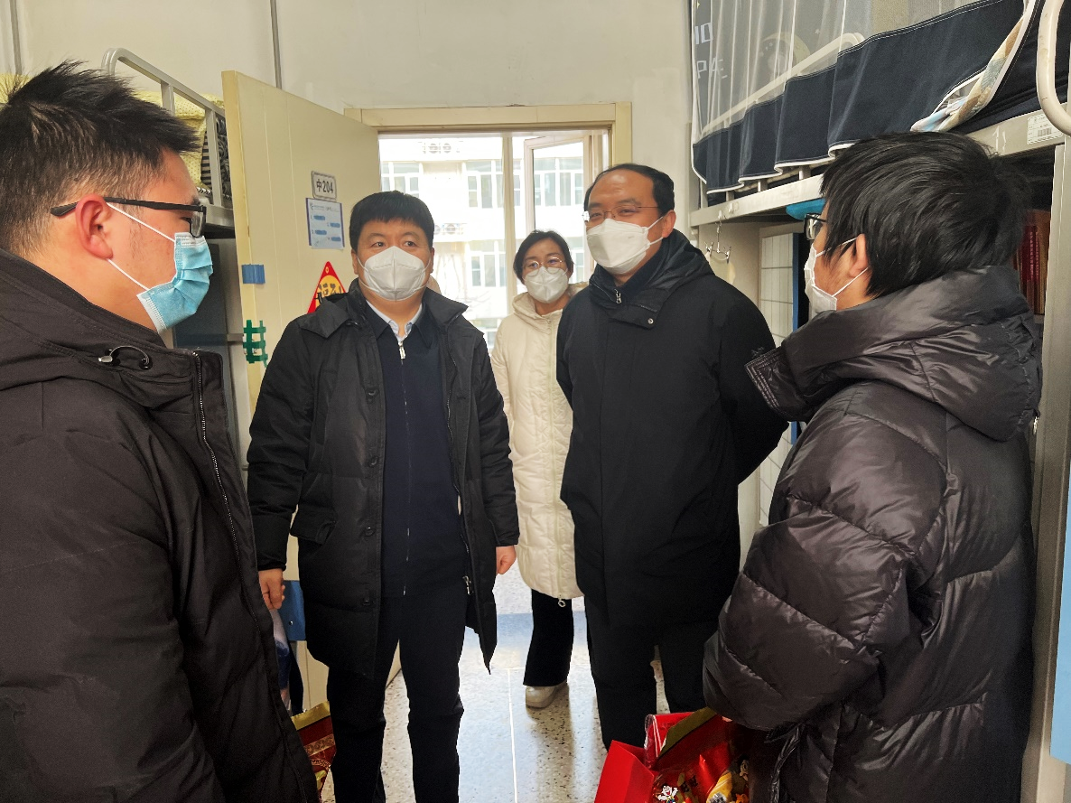 1月18日,腊月二十七,随着农历新年的脚步渐近,为了让留校学生感受到浓郁的年味和喜庆的氛围,动力学院开展寒假留校新春慰问。学院院长闫晓军、党委书记董卓宁、党委副书记方志、团委书记李天韵前往学生宿舍慰问春节留校学生,与学生们亲切交流、座谈,询问留校学生的学业生活情况,并送去春节慰问品。