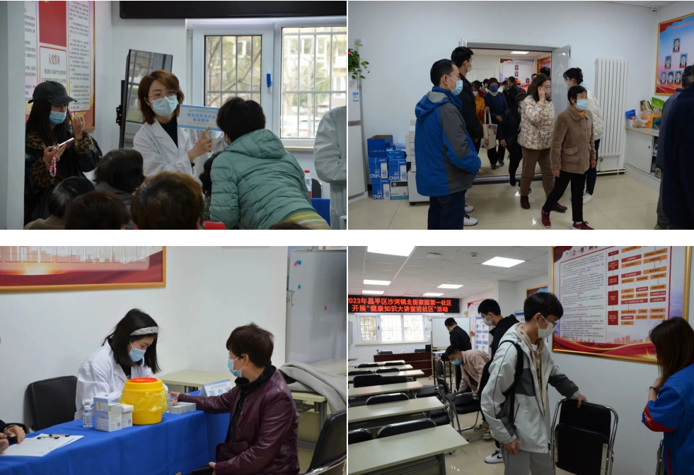 两支部由党员和积极分子组成的志愿服务小队,于早上9点抵达北街家园第一社区服务站,协同社区工作人员开展社区健康讲座和中医义诊活动的开展。在活动开始前,小组成员分成小组进行了会场的布置及群众引导入座,在活动进行时认真聆听讲座、帮助社区工作人员做好活动记录。在帮助群众进行测量血压、血糖的义诊环节,小组成员主动参与到现场的秩序维护及引导。