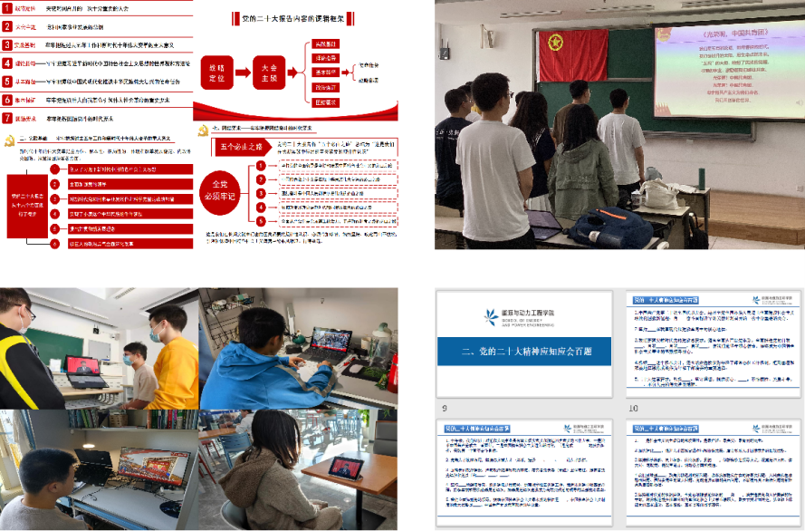 支部打造多形式多内容多角度的主旋律活动,深入学习贯彻党的二十大精神,以提升党性意识修养和理论水平为目标,从思想上引领同学们开拓奋进,开展“学习二十大、永远跟党走、奋进新征程”专题学习,系统梳理党的二十大报告,把握党的二十大精神内核,对比式点对点学习新修订的党章,明确马克思主义中国化、时代化最新成果,举行党的二十大精神应知应会百题知识竞赛,理论实践融会贯通。