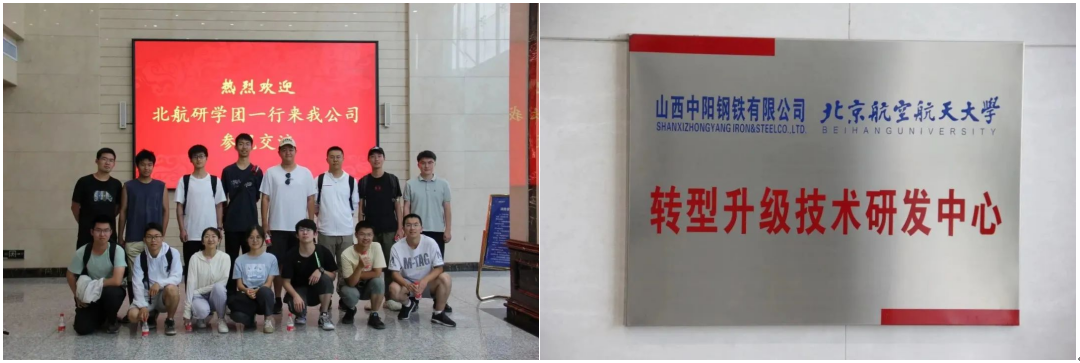 实践队参观了由山西中阳钢铁有限公司和北京航空航天大学共建的转型升级研发中心,了解到中阳钢铁通过与多个高校课题组展开通力合作,取得多项创新实用专利,包括钢材的工艺改进和环保涂料的研发。