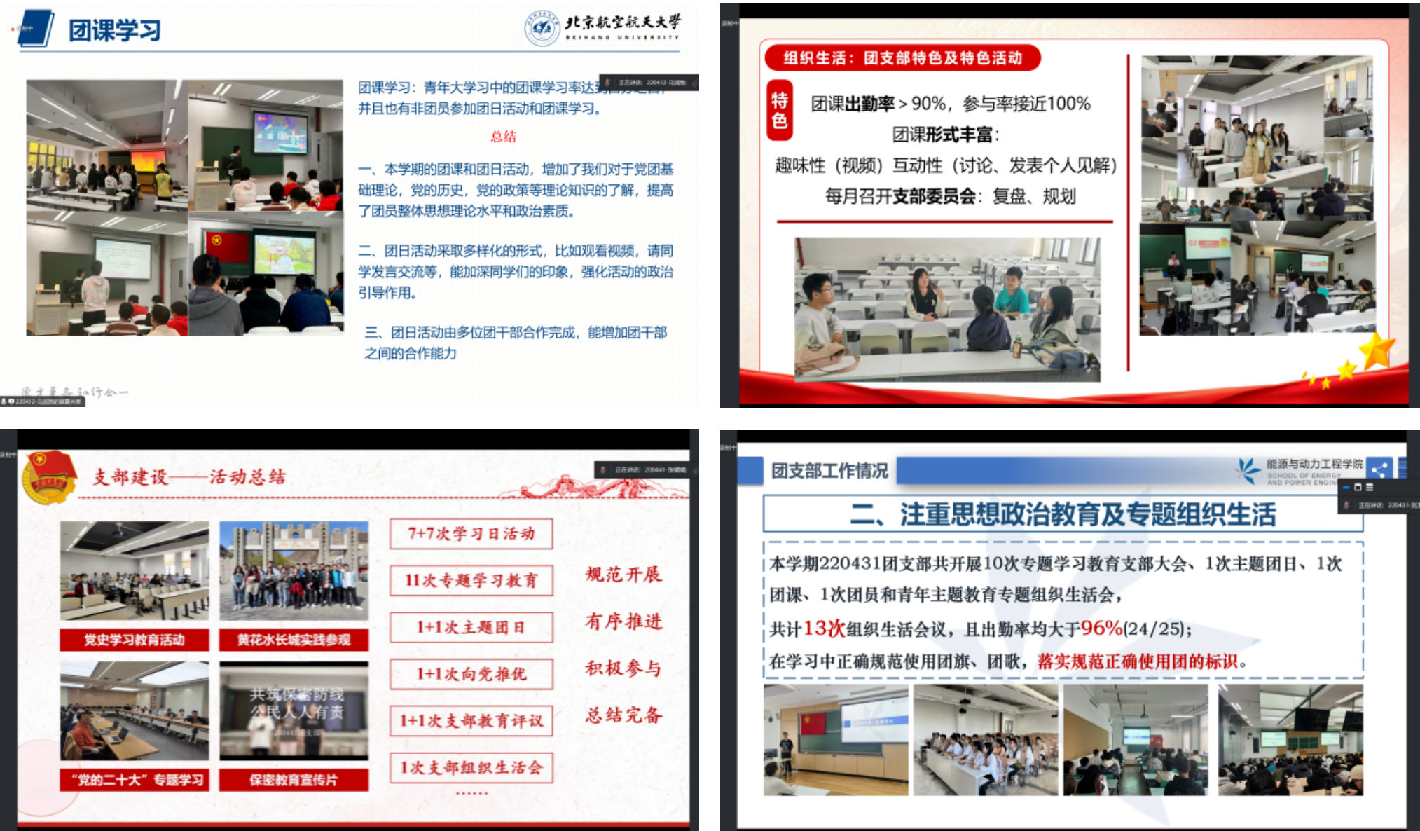随后,各团支部书记依次进行述职,从班子建设、团员管理、组织落实、作用发挥等方面汇报年度工作情况,展现支部风采。在此基础上,团支部书记对工作中的不足进行了深刻反思,并提出了一系列改进措施。