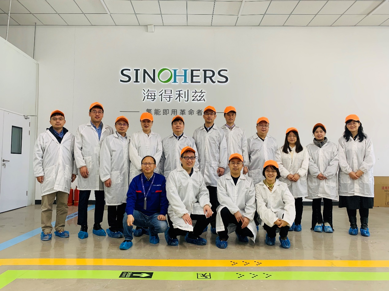 学院交流访问团首先参观了海得利兹生产基地。该公司是一家从事高温质子交换膜燃料电池技术研发与产业化的国家高新技术企业,北京市“专精特新”中小企业,并获批国家企业博士后科研工作站;源自北京航空航天大学十余年的产品研发积累,目前已发展形成了高温质子交换膜、膜电极、电堆等核心零部件,甲醇重整高温质子交换膜燃料电池发电系统、高温膜燃料电池测试平台等五大自主知识产权核心产品。学院交流访问团参观了研发中心、生产车间及测试车间,详细了解了相关技术在热电联供、电-电混合动力系统等领域的示范应用。此外,学院交流访问团还参观了大兴国际氢能示范园展区,详细了解园区整体情况及未来规划、孵化的主要企业与代表性产品,并与园区领导及管理团队进行了深度交流。