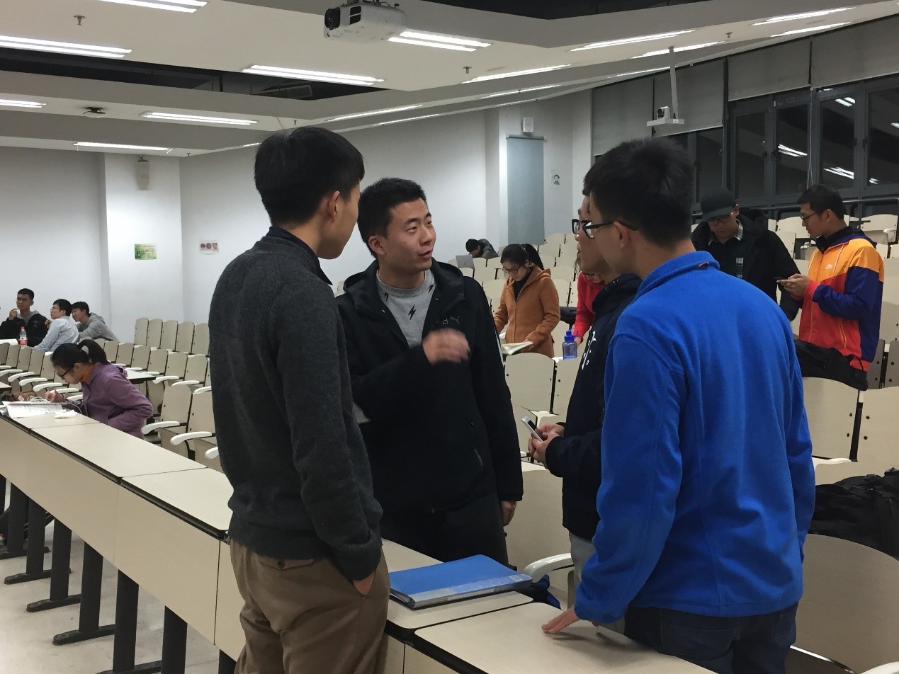 最后同学们和优秀项目作者的自由交流,同学们各自找到自己感兴趣的项目的作者,进行了进一步的深入交谈,大一大二的同学们积极主动,热情高涨,向学长学姐提出了自己心中关于科技实践的种种疑问,学长学姐们也尽心尽力,结合自己的经历与体会,为学弟学妹们作出了详尽的解答。