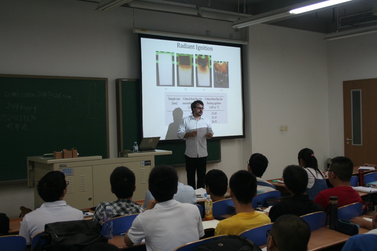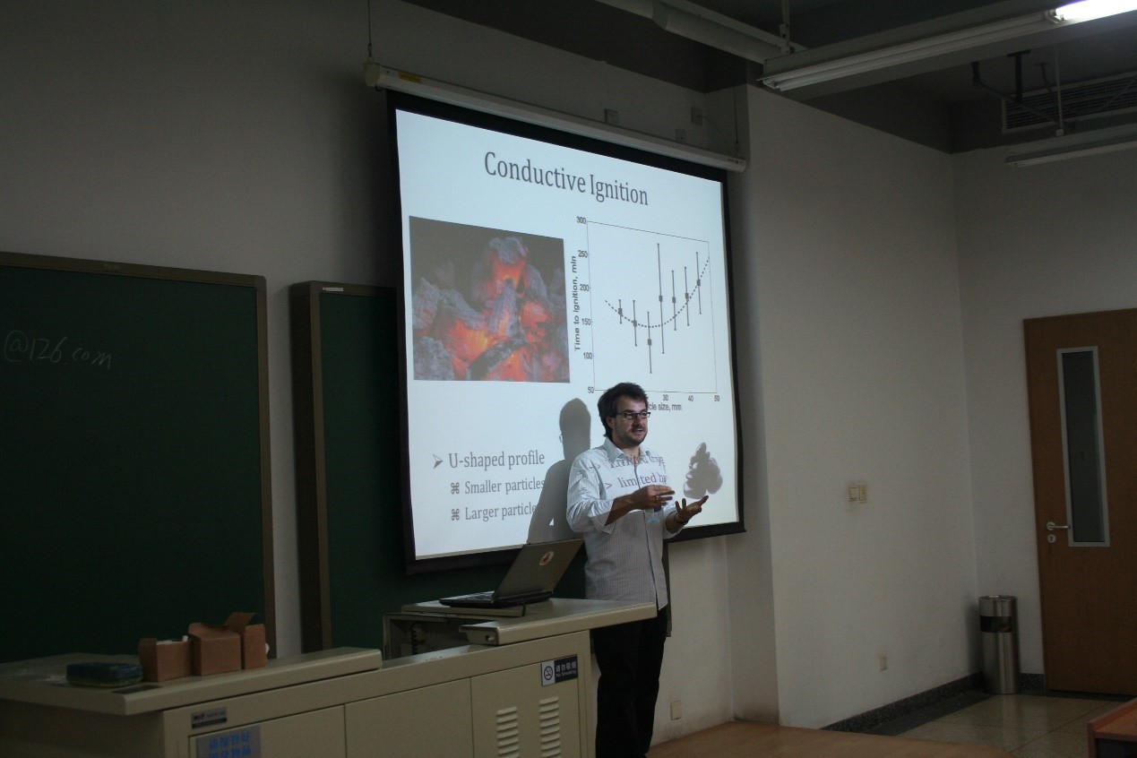2014年7月21日至26日,应北京航空航天大学必发bf88官网的邀请,英国帝国理工学院Guillermo Rein教授前来学院进行学术访问。访问期间,Rein教授为我院本科生与研究生开设了“燃烧基础”全英文引智课程。