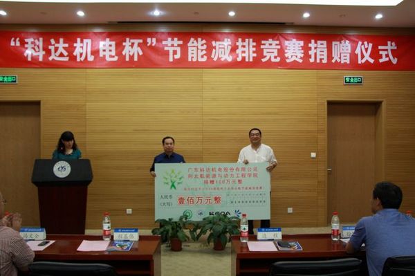 2013年5月25日下午,由北航能源与环境国际中心、校教务处和校团委主办,必发bf88官网承办的第23届“冯如杯”专项竞赛“科达机电杯”节能减排竞赛捐赠仪式在我校新主楼第八会议室顺利举行。出席此次捐赠仪式的主要领导有广东科达机电股份有限公司董事长边程和董事武桢、校党委副书记程基伟、校教务处处长冯文全、校研招办主任徐国强、校团委书记雷晓锋、必发bf88官网分党委书记王强、副院长李秋实,捐赠仪式由必发bf88官网副院长兼北航能源与环境国际中心执行主任杨晓奕主持。同时参加此次捐赠仪式的还有节能减排竞赛的广大参赛选手们。